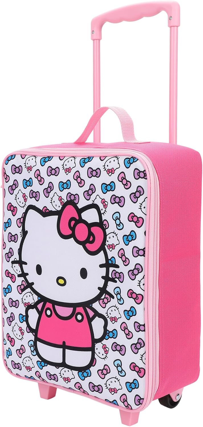 Add playful charm to your child's travels with this pink Disney Minnie Mouse youth pilot case. Featuring Minnie surrounded by sunglasses, diamonds, shooting stars, and bows on a white polka dot background, this bag delivers fun on the go. The telescopic retractable handle and two wheels make rolling easy, while the interior mesh pocket keeps small items organized. Crafted with sublimated 600D poly, it ensures durability. Wipe it clean for easy care.